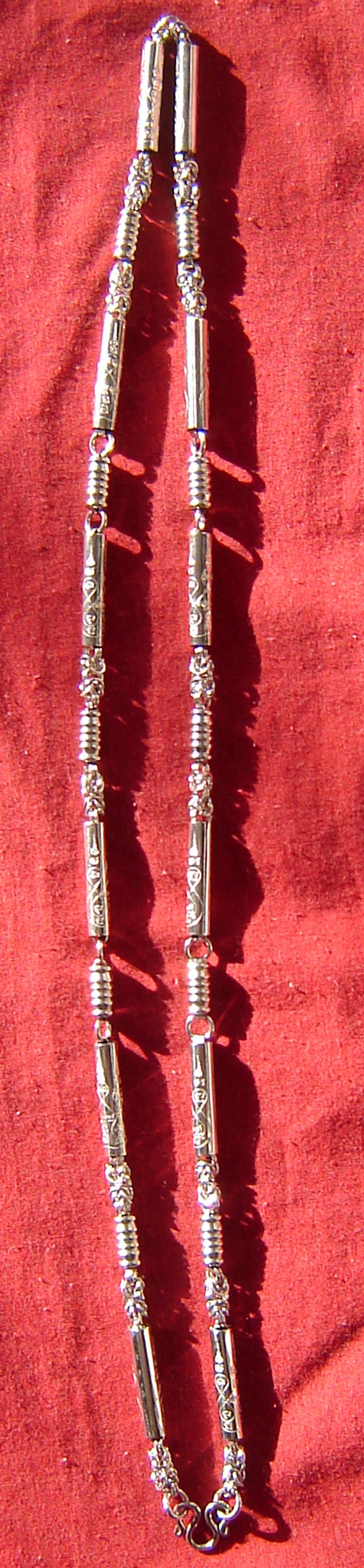 It is Lek Lai Tham (cave lek Lai) which has been extracted using the ancient magical Wicha (some forms of Lek lai are manually extracted and do not possess the same super powers as that extracted by a pure hearted monk with powerful Wicha). This amulet is pure Lek Lai Nam Neung (first class cave Lek Lai) and is 'See Ngern Yuan (a Silver Mercury-Like metallic color). Its metallic sheen has a enticing aura to it. Extreme Protection and Wealth Increase is awarded with this amulet.
