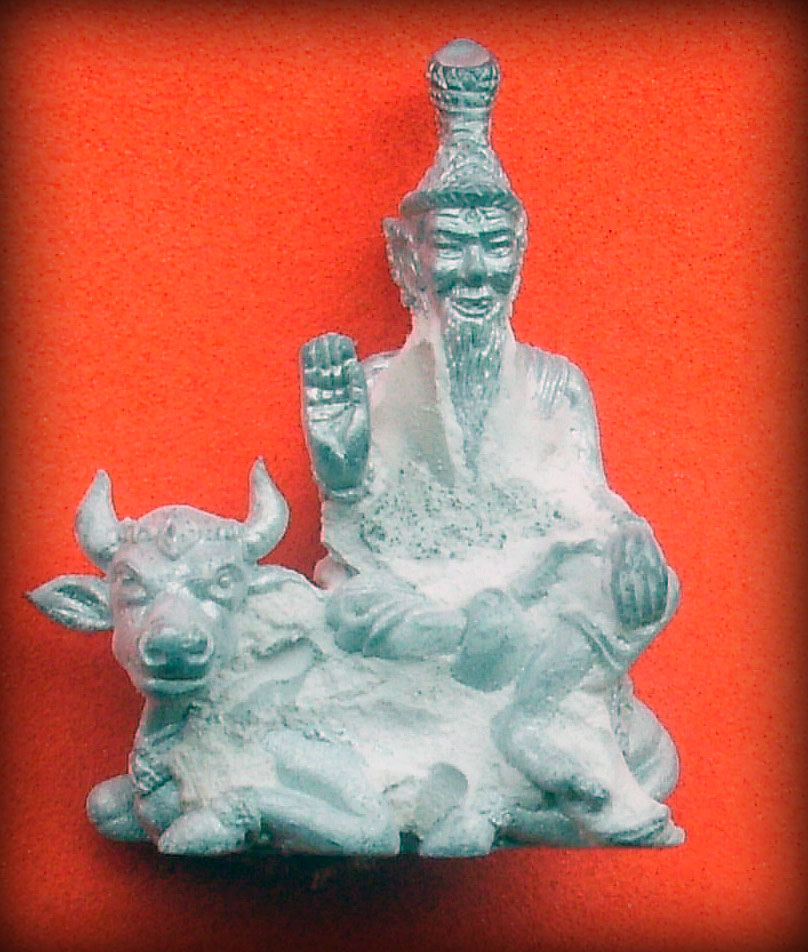 This Loi Ong Bucha statuette of Ruesi Isworn sitting on the Sacred Cow Nonti is made by Luang Phu Nong of Wat Wang Sri Tong in Sra Gaew.