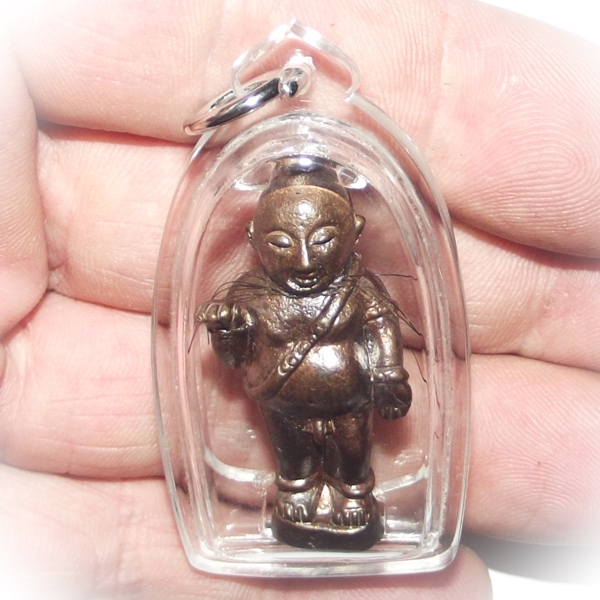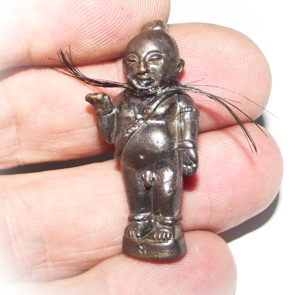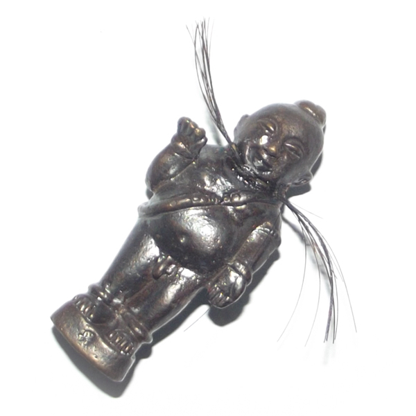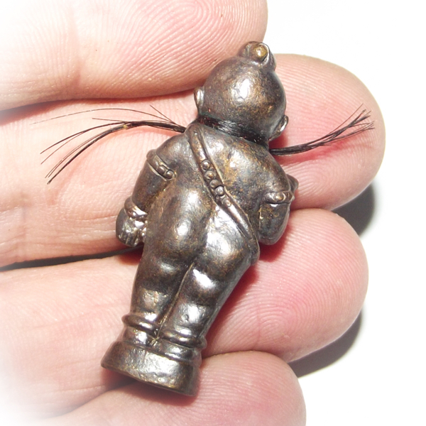 This Kumarn Tong Loi Ongk statuette amulets is now a very rare acquisition, from the Wai Kroo 54 Edition - it is a Kumarn Tong Taep Effigy with 9 different auspiciuous blessings. Made from Nuea Loha Aathan, with Sacred Necromantic Prai Kumarn powders embedded within the effigy, from grand Master of Manorah Magick, Pra Ajarn Prasut, of Wat Nai Tao.