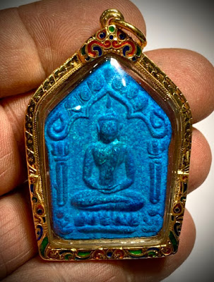 There are various interpretations of who the Buddha image represents in Thai Buddhist belief system; the most common being that it is derived from the Pra Ruang Royal Family Lineage, who were the first and only rulers of the Sukhothai Kingdom Era of Thai History. This amulet is renowned for its 'Gundstopper' Maha Ud Magick, and its Serm Yos Prmotion Inducing Power, as well as being a Classic Votive Tablet in metallic form with the blessings and empowerment of some of the greatest master Monks of the Time.