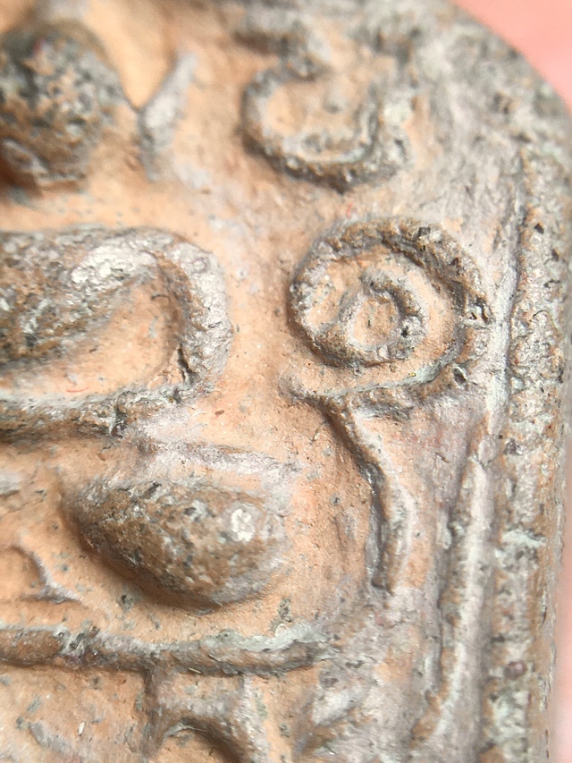 Its marks of authenticity, apart from knowing how to recognise the ingredients of the Sacred Powders and Muan Sarn in the amulet, and the signs of aging, are various;
